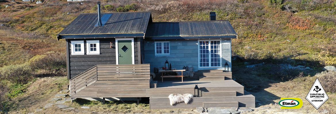 Ved innsjøen Tyin ligger hytta til Benedicte og Jon Olav idyllisk til.