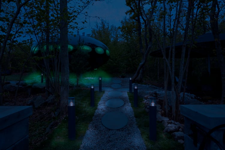 Det blir LED stripe under UFO'en som gir en gøy og tøff lyseffekt, pullerter langs gangsti og ikke minst så blir det trådløs styring via app på telefon.
