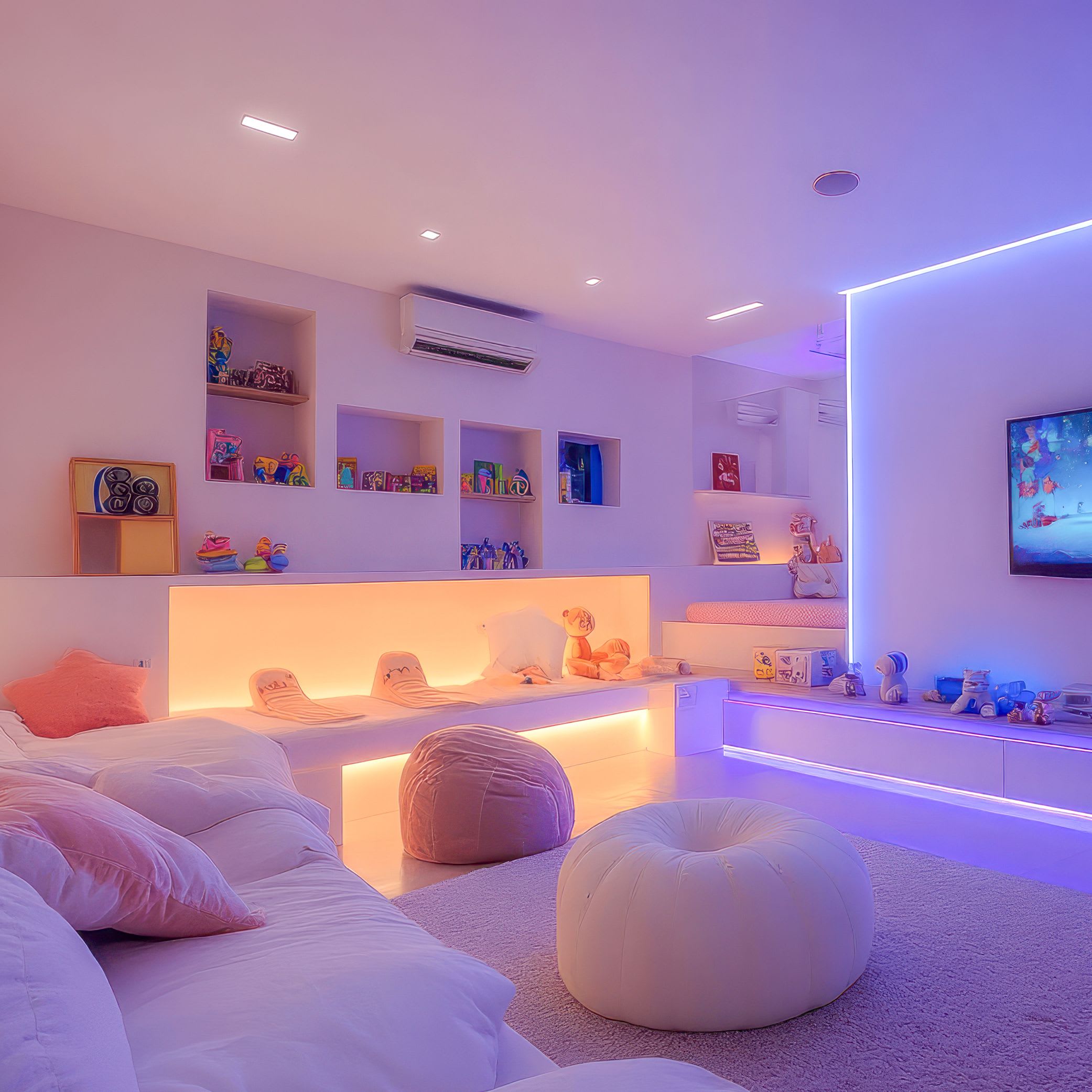 Enten du ønsker et dynamisk og fargerikt gamingrom, et lekent og trygt barnerom, et motiverende treningsrom eller en lun og koselig stue, gir RGB LED-striper deg fleksibiliteten til å forvandle rommet med enkle grep. De kan monteres under hyller, bak TV-en, langs taket eller rundt speil – kun fantasien setter grenser.