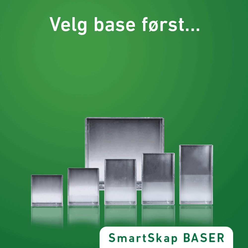 Base, og front med innsats leveres som to forskjellige produkter. Dette muliggjør at man først kan installere basen uten at